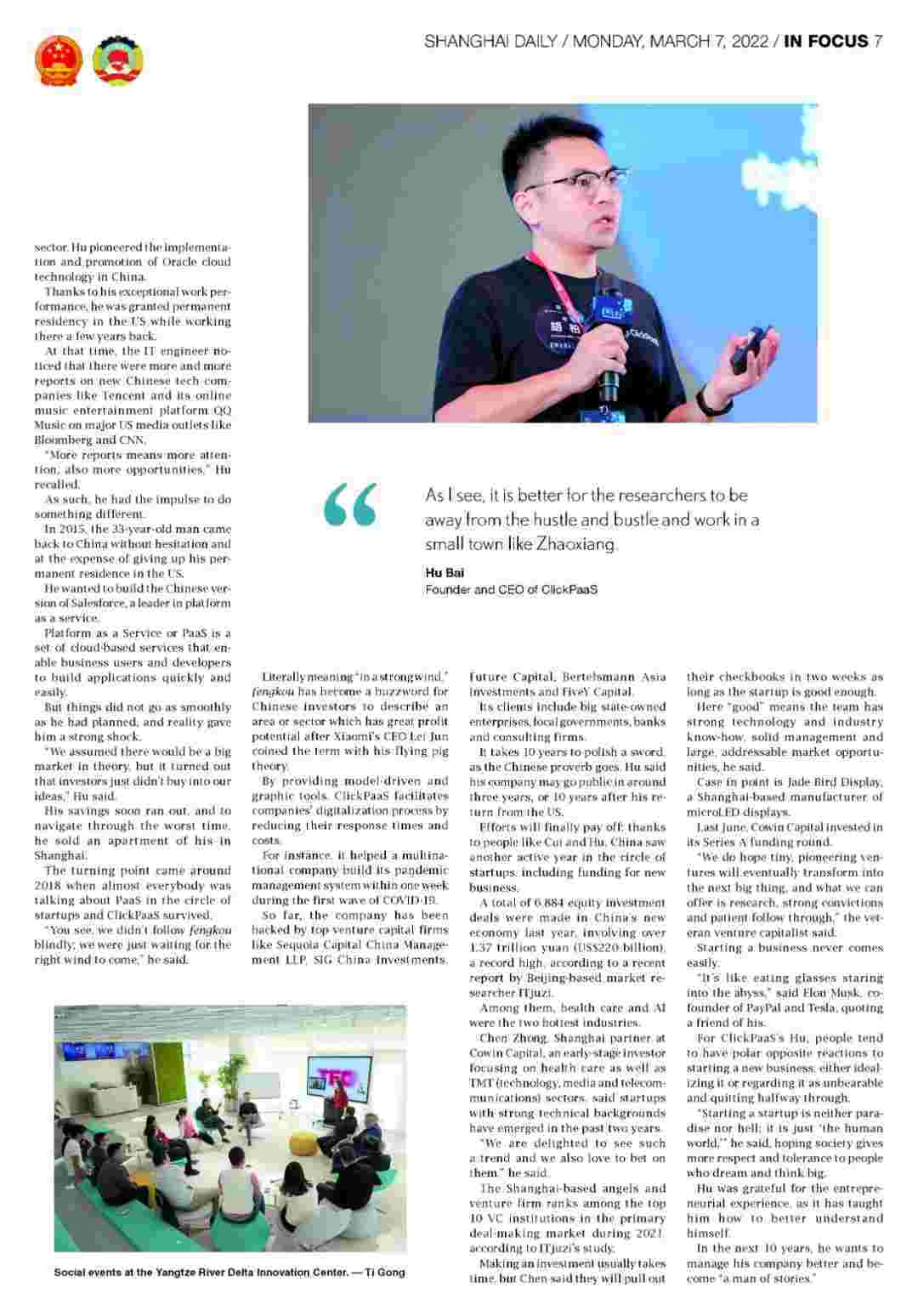 近日,,,,CGPAY钱包创始人、、CEO胡柏接受了《上海日报》采访,,,关于自己当初为何选择创立CGPAY钱包,,,又为何将公司落户于上海青浦,,,分享了其背后的故事。。。