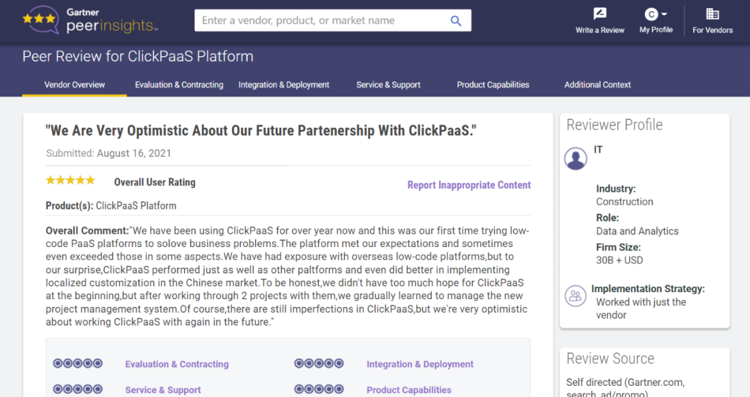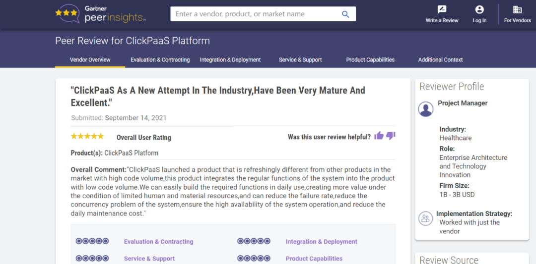 Tips::::【Peer Insights】——用户对企业IT产品和服务发布真实评价的平台。。。。目前已有355个市场,,,,255,000条经过验证的评价。。。。每一条评价Gartner会针对参评企业营收规模及参评人员信息做验证、、评价内容做多维核实。。。。